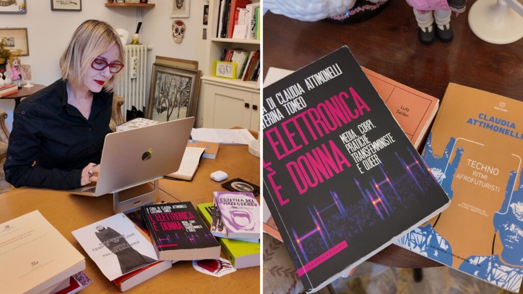 Volendo cedere a una definizione istituzionale, Claudia Attimonelli è sociosemiologa e professoressa associata presso il dipartimento ForPsiCom di Bari nel corso di laurea in Scienze della Comunicazione all’Università degli Studi di Bari, dove insegna Media, Cultura visuale e Sound Studies. Ma il peso e l’influenza del lavoro di Attimonelli non ne sarebbe certamente rappresentata. La “prof della techno” è da anni un punto di riferimento internazionale negli studi sui media, in particolare per quanto riguarda la musica come dispositivo culturale e la storia della techno, letta non solo nella sua evoluzione sonora ma nelle sue implicazioni sociali, politiche e identitarie.