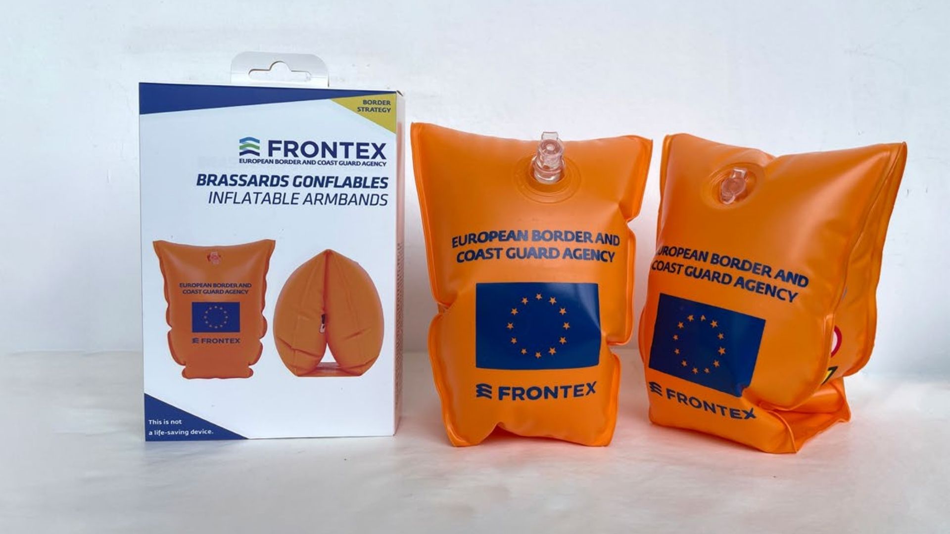 L’apice di questa ricerca è Border strategy opera del 2021 non a casa scelta anche nel primo numero cartaceo di Maestrale Magazine. Questo lavoro presenta ironicamente un paio di braccioli da nuoto con il logo dell’Agenzia Frontex, il primo servizio in uniforme nella storia dell’UE. Sul sito leggiamo: “addestrate dai migliori e dotate delle più recenti tecnologie, le guardie di frontiera e costiere di Frontex sono pronte ad affrontare le sfide alle frontiere, contribuendo a garantire il corretto funzionamento dello Spazio Schengen europeo. Ciò include il supporto nella gestione della migrazione, la lotta alla criminalità transfrontaliera e alle attività di rimpatrio, nonché il sostegno alle autorità nazionali per rendere l’ attraversamento del confine sicuro e agevole per tutti i viaggiatori”. L’artista sottolinea come sia significativo che il sostegno umanitario non sia tra i compiti dichiarati.