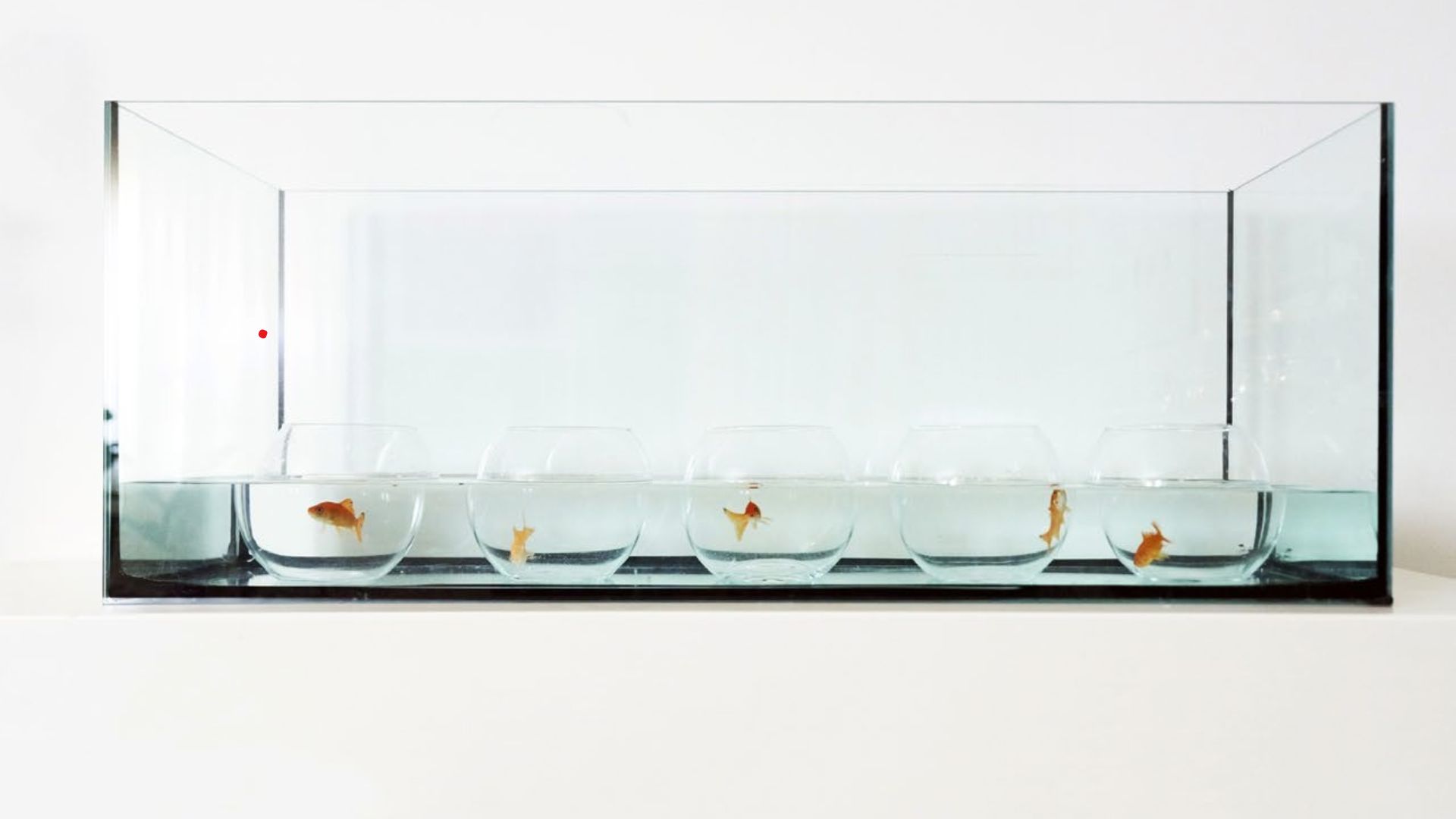 Con l’opera Here and there del 2016, abbiamo una prova della fulminante sintesi dell’artista rispetto ai temi esistenziali. Questa vasca con cinque ciotole che contengono altrettanti pesci, è una scultura vivente sull’idea di paradossale incomunicabilità tra individui che vivono le stesse identiche condizioni. E proprio quest’ultima opera in cui l’acqua come abbiamo già detto unisce ma allo stesso tempo definisce, rappresenta un passaggio che si sovrappone perfettamente con il lavoro sulle identità nazionali e sovra nazionali.