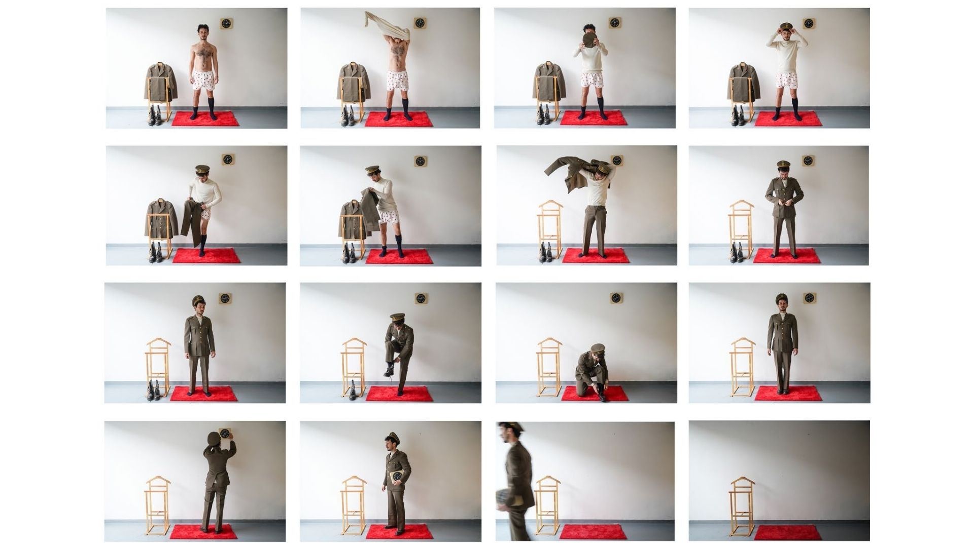 I lavori più recenti di Guastamacchia riflettono sulle dinamiche geopolitiche globali. L’installazione La divisa militare di mio padre è ancora buona presentata nel 2023 presso l’Osservatorio Futura di Torino, racchiude lo spirito delle preoccupazioni legate a una guerra che sembra sempre più vicina. Se gli uomini e le donne torneranno al fronte basterà aprire l’armadio dei nostri genitori per recuperare una divisa militare. L’abbigliamento vintage è qui veicolo di un oscuro presagio, e il preloved diventa premonitore. Il lavoro presentato inizialmente come installazione si è poi evoluto in una performance dello stesso artista.